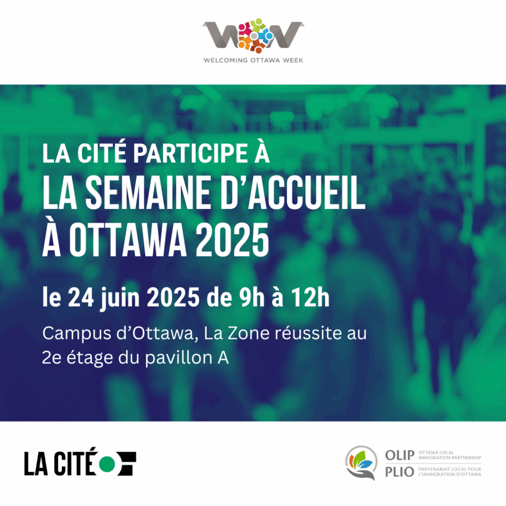 Des kiosques informatifs présentant les programmes d’intégration du Collège La Cité, les services aux nouveaux arrivants et les ressources offertes.