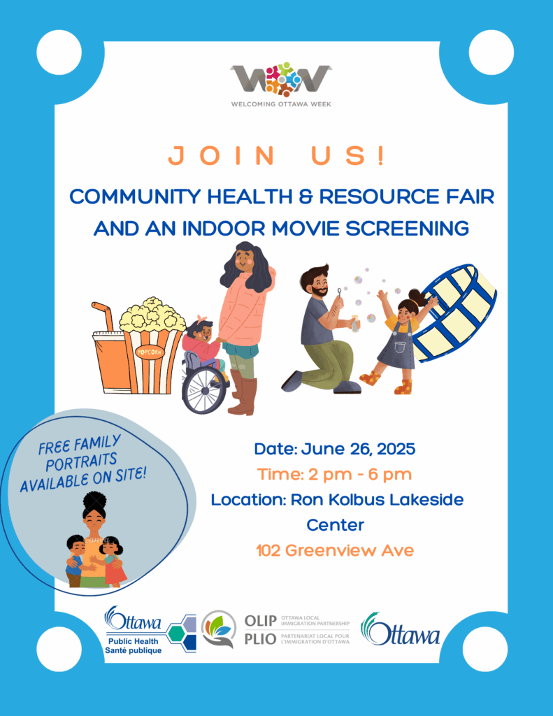 Join us for a Community Resource and Health Fair where you can connect with local service providers and friendly staff offering support in health, settlement, housing, recreation, and more. Enjoy free family portraits provided by Phase1, and get cozy and wrap up the day with a free indoor movie screening in the center’s main hall. Feel free to bring blankets or anything else to make your movie experience more comfortable! We look forward to meeting you!